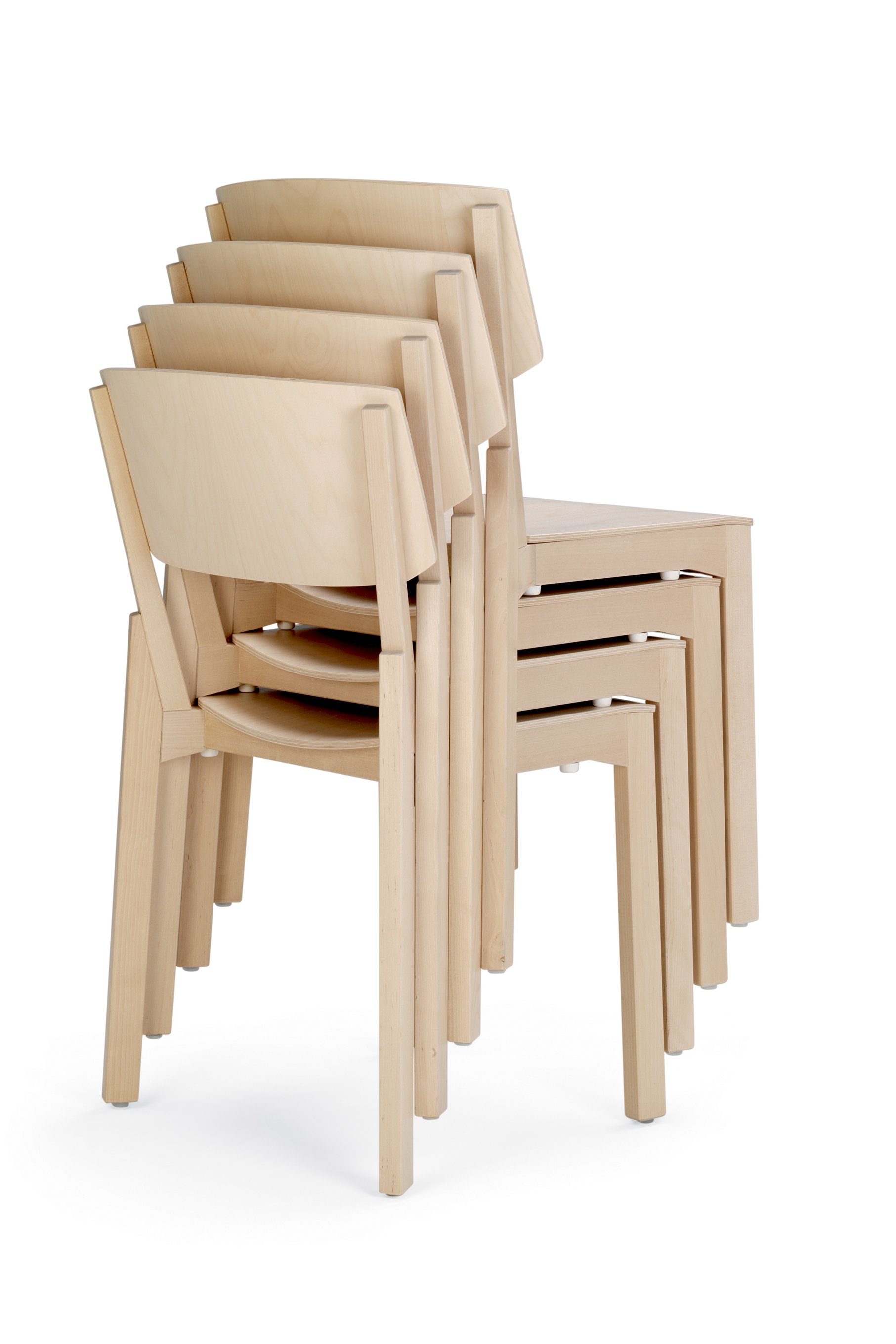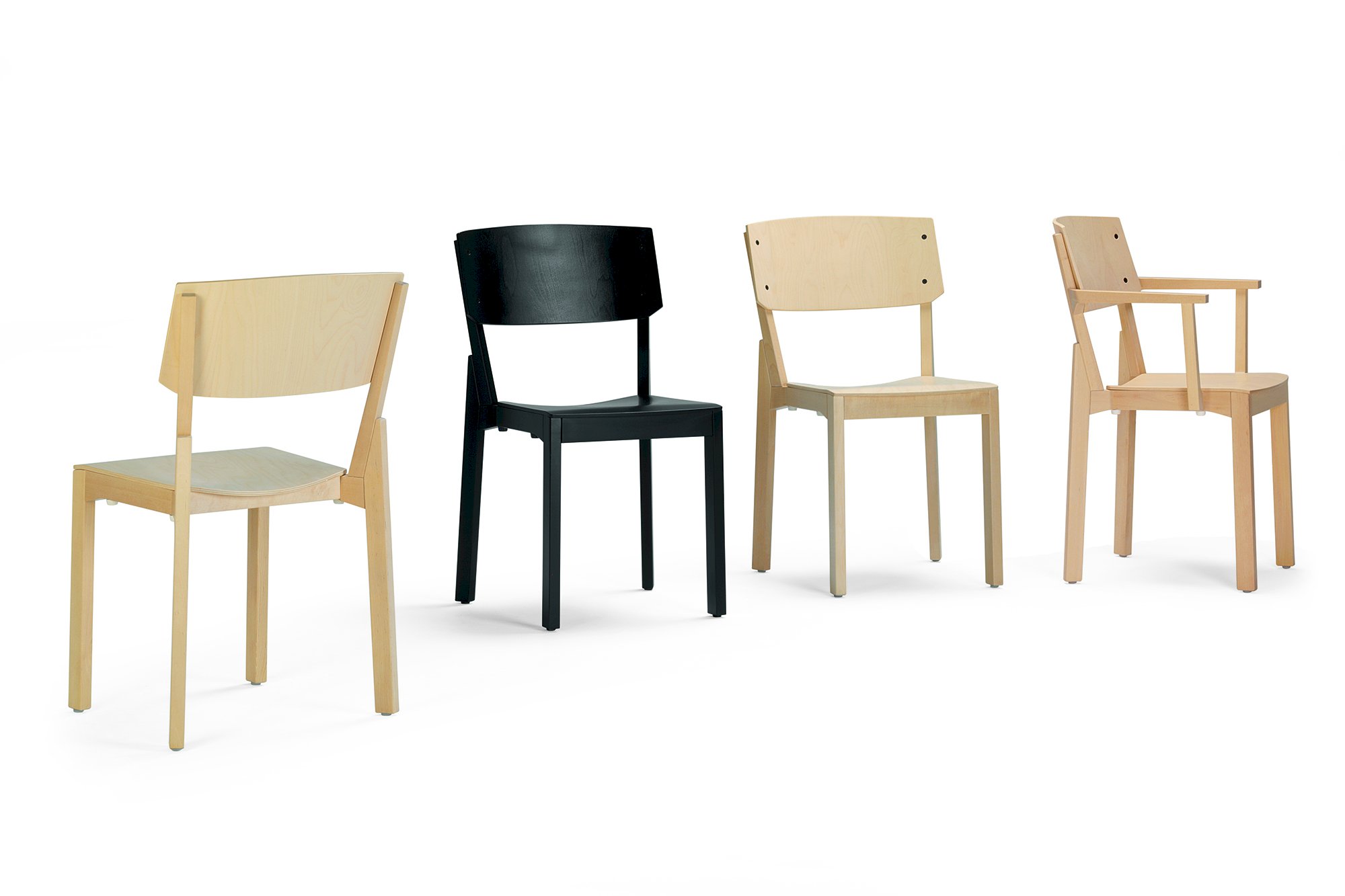 This stacking chair and armchair, designed in 2011, has its origin in a constructive idea about a wooden knot/hub connecting frame, legs and back. The knot has been a hub from which the chair has been given its characteristic form and durable construction.